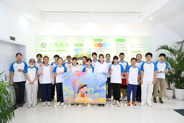午休后,学生们走进合作企业——上海盛谷光电科技有限公司,参观现代农业绿色防控设施,如诱虫板、防虫网和生物防治区,直观了解科技如何服务生态农业。在企业讲解人员的带领下,大家对“绿色农业”有了全新理解。