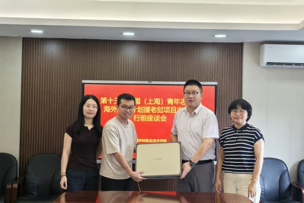 近日,学院为陈岳老师举行援老挝志愿服务行前座谈会暨培训会。党委副书记、副院长邵阳,组织部、团委、国际合作交流处、植物科学技术系相关负责人,青年志愿者陈岳等参加。