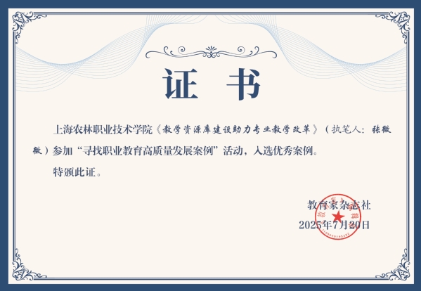 近日,光明日报《教育家》杂志主办的“寻找职业教育高质量发展优秀案例”评选结果揭晓。在全国85个获奖案例中,我院《新农科背景下“四维四融”课程思政育人体系构建与实践》《教学资源库建设助力专业教学改革》《双环联动双向发力共谱国际现代园艺数智绿领人培养新范式》三个案例入选,展现了我院在职业教育领域的创新实践成果。