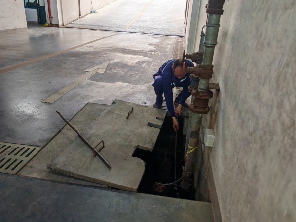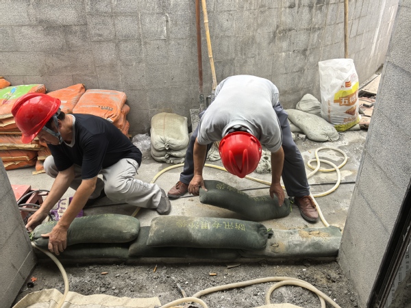 物业团队聚焦校园基础设施的防护加固,对全校楼宇的门窗、幕墙、屋顶进行细致排查与加固,特别是对存在松动、老化风险的玻璃、框架、百叶窗等部件进行紧急维修或更换,严防台风来袭时发生高空坠物事故。针对配电房、水泵房、锅炉房等核心动力设施,进行专项防护检查,确保其防水密封性和运行可靠性。另外,对地下车库、设备层等易积水区域进行重点布防,彻底清理排水沟、集水井内的淤泥落叶杂物,反复测试排水泵自动启停功能,并在所有车库入口处规范设置挡水板、备足防汛沙袋,做好万全的防水防潮准备。