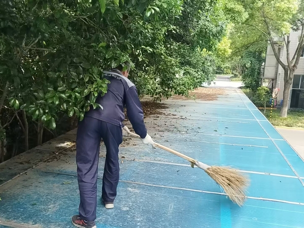 保洁团队以保障校园排水畅通为核心任务,对校园内主次干道、绿化带、楼宇周边排水明沟、暗渠进行彻底清掏,清除积存的落叶、淤泥、生活垃圾等堵塞物。同时,加强对楼宇四周排水沟渠、天台落水口的清理维护,确保雨水能够快速汇集、顺畅排出,最大程度避免因排水不畅导致的路面积水、雨水倒灌等次生灾害,为师生出行安全扫清障碍。