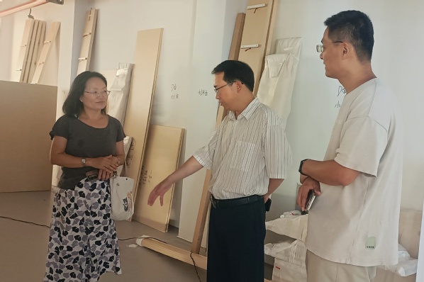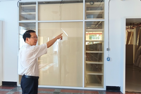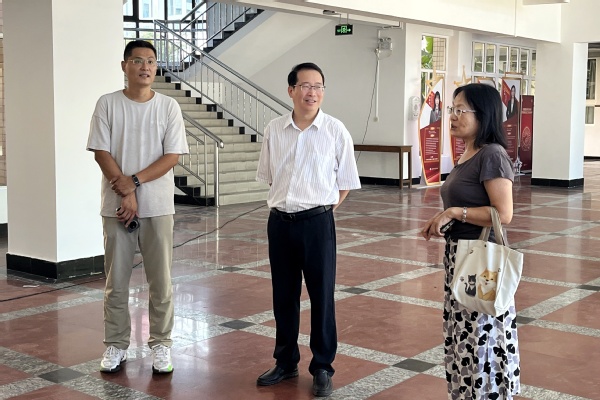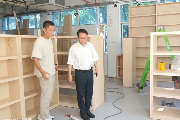 8月28日,副院长潘国俭走进第一教学楼,实地察看阅览室建设项目的施工进度。