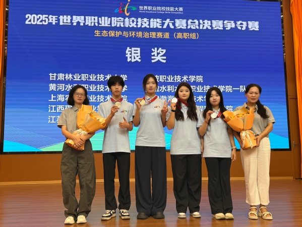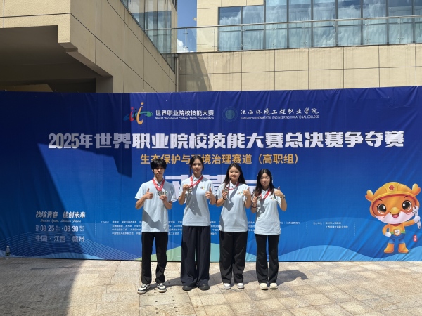 8月25日至30日,2025年世界职业院校技能大赛总决赛生态保护与环境治理赛道争夺赛在江西赣州举办。本届大赛共吸引来自全国29个省(自治区、直辖市)的110支代表队同台竞技。生物医药与健康系环境242班马琪燕、环境232班刘轩、环境242班陈敏婕、宣晨亮四位同学组成的参赛团队发挥出色,最终荣获该赛道全国总决赛银奖。