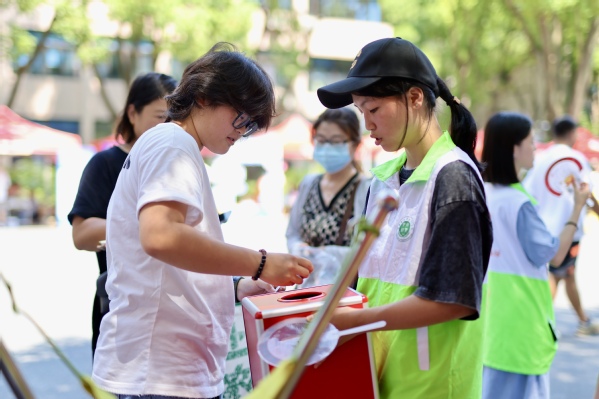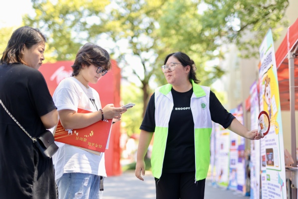 最受新生欢迎的当属游戏区。现场设置“投壶”“真人版愤怒的小鸟”两项趣味游戏,吸引大批新生驻足参与。新生只需扫描活动二维码即可领取游戏兑换券,凭借技巧与运气完成游戏挑战后,就能获得易班定制毛巾、抱枕、牙刷杯、指甲钳套装等精美礼品。游戏过程中,欢声笑语不断,新生们在轻松的氛围中相互认识、增进友谊,快速拉近了彼此距离。