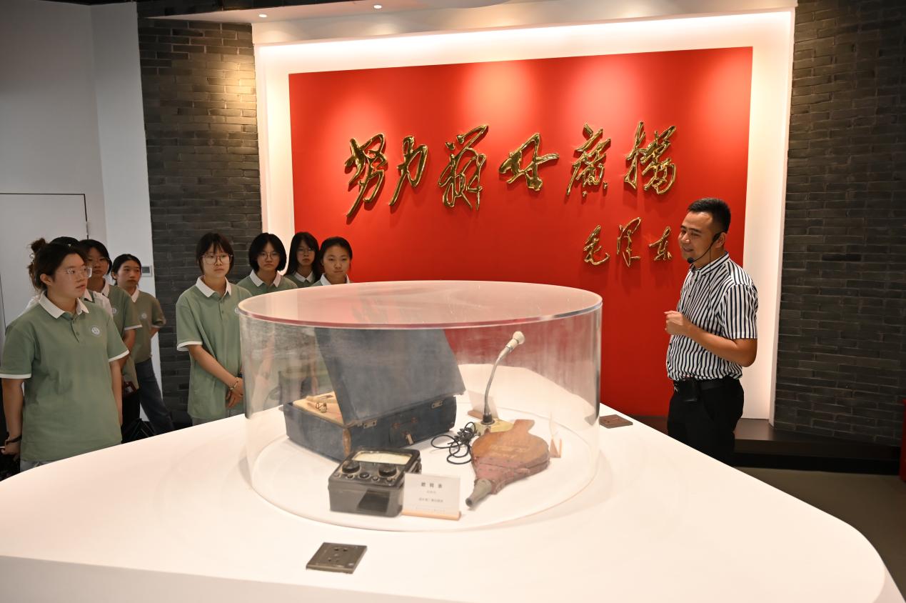 在秀洲区新塍镇康和桥村,学生骨干们走进乡村广播记忆馆。馆内陈列的数十台老式收音机、广播喇叭、录音设备,记录了从“土广播”到“有线广播”再到“数字广播”的发展变迁,生动反映了不同时期乡村的文化生活与时代风貌。在村工作人员的带领下,学生骨干们还实地参观了康和桥村的村容村貌、文化广场、便民服务中心,了解该村在乡村振兴战略下的发展成果。“从老式广播到智慧乡村建设,康和桥村的变化让我们既看了乡村发展的活力,也感受到了党和国家对乡村振兴的重视。”学生骨干们在交流中表示,将把乡村发展的鲜活案例带回校园,引导更多同学关注乡村、服务乡村。