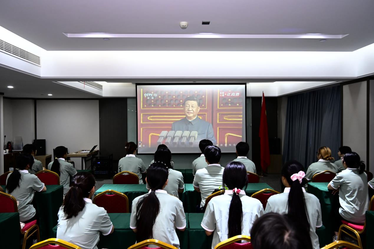 9月3日上午,全体骨干集中观看纪念中国人民抗日战争暨世界反法西斯战争胜利80周年阅兵仪式直播。屏幕上,整齐划一的受阅方阵、现代化的国防装备、昂扬向上的军人风貌,生动展现了中国的强盛国力与强军风采。观看过程中,骨干们神情肃穆、心潮澎湃。院学生会执行主席农经241王语彤表示:“观看纪念中国人民抗日战争暨世界反法西斯战争胜利80周年的九三阅兵仪式,我的内心深受震撼。阅兵式中,徒步方队的‘一老一新’设计让我印象深刻。这不仅是抗战老部队与新质战斗力的展示,更是对抗战精神的传承。当看到那些与我年龄相仿的年轻军人挺拔的身姿时,我思考着自己该如何在专业领域深耕细作,将个人成长融入国家发展需要。”学院易班学生工作站学生骨干园艺241班的彭天昊同学表示:“阅兵仪式让我们直观感受到今日和平的来之不易,这是无数革命先烈用鲜血和生命换来的。作为新时代青年,我们必须铭记历史、缅怀先烈,以更强的责任感和使命感为国家发展、民族复兴贡献青春力量。”