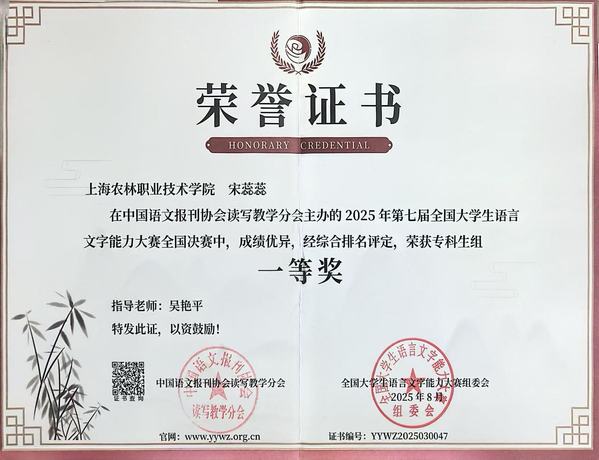 本次大赛分为省赛和全国决赛两个阶段。自4月初启动备赛至8月末决赛成绩公布,历时近半年。省赛以基础知识考核为主,全面考查选手对汉语言文化基础的掌握情况,内容涵盖读音、语义、词汇、语法、书写与文化常识等多个方面。在上海市赛中,我院九名参赛选手中有七人斩获奖项,包括一等奖一名、二等奖两名、三等奖四名。全国决赛则更加注重语言应用能力,设有命题写作、普通话朗读和硬笔书法等环节,考试时长达150分钟,胜出者均展现出过硬的语言综合素质。