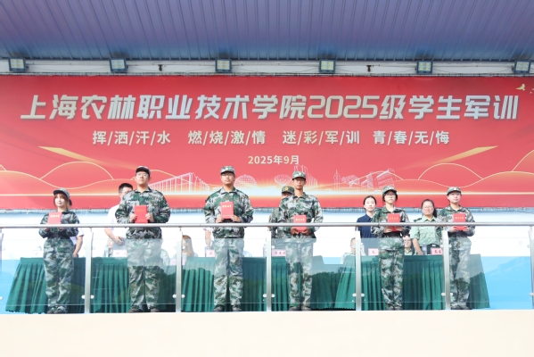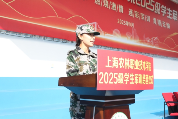 蔡红讲话。他代表学院,向大力支持学院国防教育事业的武警上海总队机动第二支队全体官兵致以崇高敬意,向参与军训工作的老师、后勤人员表示亲切问候,向顺利完成军训任务的2025级全体同学表示热烈祝贺。并向同学们提出四点期望:一是以军训态度守“初心”。要将“学好技能、服务农业”的信念落实于行动,像军训一样恪守纪律、严谨务实,把一丝不苟的态度融入每一门课程、每一次实验和每一个细节,踏实坚守为农服务的初心。二是以扎根精神怀“农心”。上海的都市现代农业是服务超大城市运转、守护国家粮食安全、点亮人民美好生活的“国之大者”。要常怀一颗敬畏土地、服务社会的农心,主动将个人理想融入上海农业发展与国家乡村振兴大局。三是以精益求精炼“匠心”。军训中每一个动作反复锤炼直至标准,正体现了追求极致的匠心。未来无论是完成一次精准检测,还是设计一份园林方案,都需如此潜心钻研、打磨技能,努力做到既“会操作”,更“懂原理”“能创新”。四是以坚韧毅力成“匠才”。面对今后学习生活中的困难,要回想军训中烈日风雨下的坚持,把淬炼出的意志转化为解决实际问题的能力,从一名“掌握技能”的学生成长为服务农业强国建设的“生力军”。