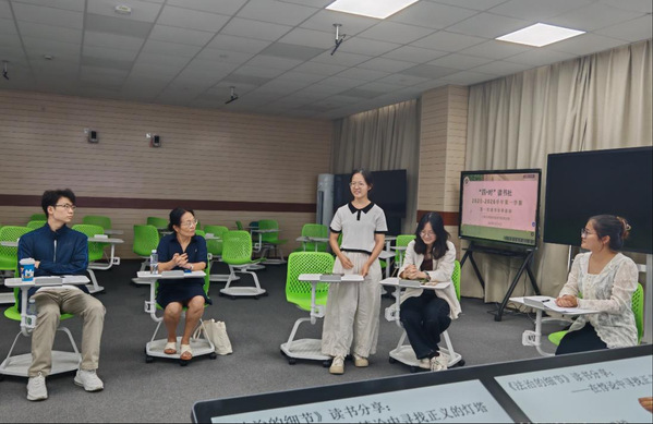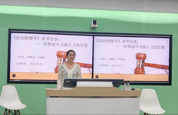 秋意渐浓,书香正醇。9月19日,四·时读书社新学期首次活动在综合楼402智慧教室举行。活动分为两个环节,首先由社员、园林241班尹水仙同学分享罗翔著《法治的细节》,探讨程序正义的价值与困境;同学们再分别交流暑假收获。指导老师、图书馆馆长樊清誉与读书社成员们共同参加活动。