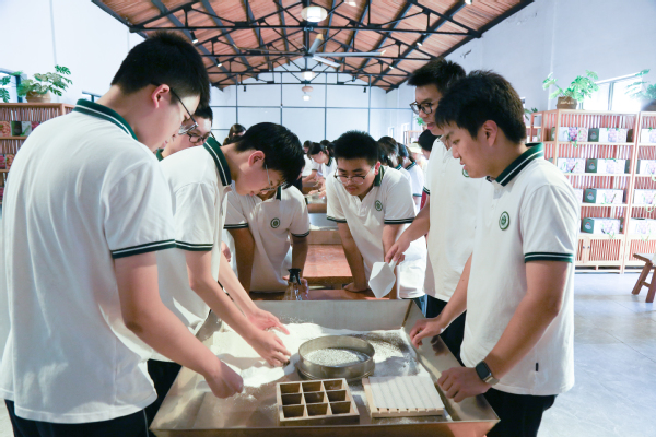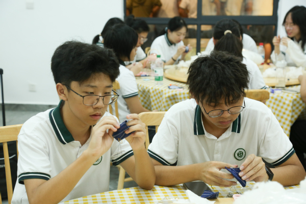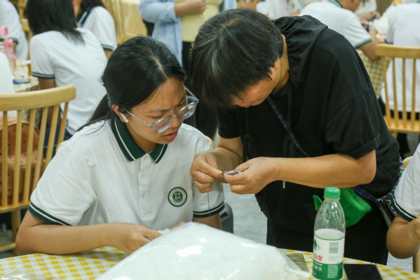 为进一步丰富劳动教育内涵,强化专业人文底蕴,学校联合农场特别设置非遗箔布体验环节,邀请专业非遗老师现场教学。老师手把手指导同学们制作箔布作品,从“材料裁剪”到“纹样设计”,从“手法生疏”到“逐渐熟练”,同学们在一针一线的操作中,不仅触摸到非遗文化的独特脉络,更在“精细操作”“创意表达”中锻炼动手能力与审美素养。
