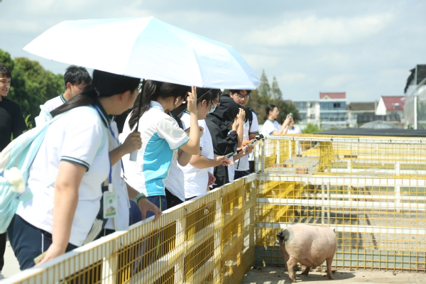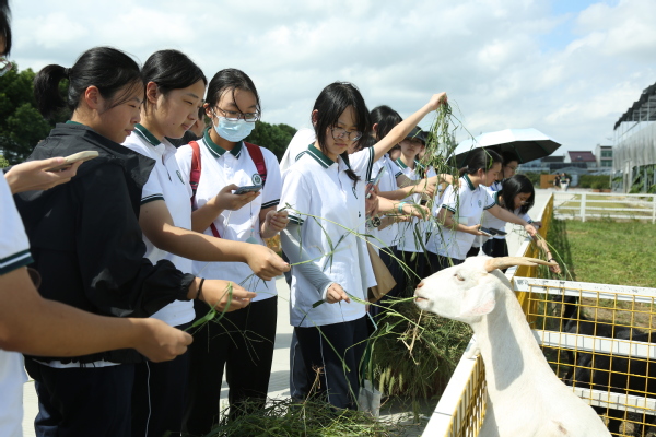 在萌宠互动区域,小兔、小羊、小猪等可爱的小动物吸引同学们纷纷驻足,大家在有序喂食、温柔互动中,不仅感受自然生机与生命活力,更在“责任照料”中培养耐心、细心等职业必备品质。