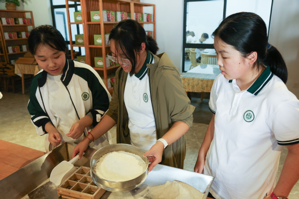 在叶榭非遗软糕制作环节,现场工作人员围绕“食材配比”“火候控制”“造型塑造”等关键步骤进行细致指导。同学们分组协作,从揉面、包馅到蒸制、脱模,每一个环节都认真投入。当软糯香甜的软糕新鲜出炉时,大家不仅品尝到传统美食的魅力,更在“团队协作”“流程把控”中体会到“标准化操作”“精细化生产”的重要性。当软糯香甜的软糕新鲜出炉时,整个实践现场香气四溢。同学们品尝着自己亲手制作的软糕,纷纷感叹“这是吃过最香的软糕!”“原来团队配合好,才能做出这么好吃的软糕,就像以后在工作岗位上,只有大家齐心协力,才能完成好项目!”同学们在品尝传统美食魅力的同时,更在实践中深化了对专业“标准化、精细化”理念的认知,切实提升了职业适应能力。