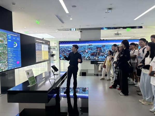 第二站参访聚焦前沿领域,师生走进商汤科技集团人工智能展厅。在工作人员引导下,新生依次体验智慧城市、智慧农业、自动驾驶三大展区,亲身体验软件算法驱动场景智能化的过程。现场,真实的项目演示震撼全场,让新生深刻感受AI技术的魅力与潜力。交流环节,新生围绕“高本阶段如何储备AI相关能力”“软件开发与AI技术的结合点”提问,企业专家逐一解答,进一步拓宽新生技术视野与跨界应用思维。
