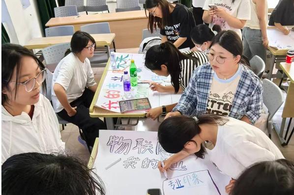 活动最后一天,课程进入关键的内化吸收与成果输出阶段。首先,新生们完成了专业认知问卷,通过答题进一步巩固对产业链格局与岗位能力要求的理解,查漏补缺;随后,以小组为单位围绕“我的专业及未来畅想”主题展开协作,共同设计并制作物联网专业初识海报,最终通过现场展示的形式分享成果。从技术应用场景梳理到岗位发展方向分析,再到个人学习规划制定,海报内容丰富多元,充分展现了新生们的创新思维与团队协作能力,也成为他们专业认知成果的生动载体。