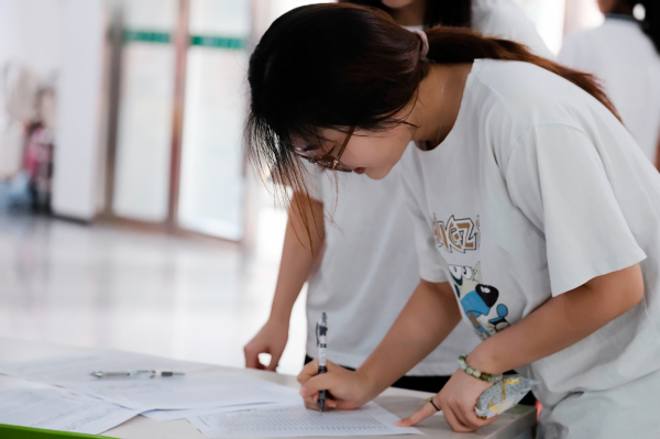 “猜灯谜区”前人头攒动,悬挂的灯谜纸条涵盖中秋文化、国庆知识与校园生活。学生们驻足思考、相互讨论,猜对谜底的同学还赢得了小礼品——书签一份,成就感满满。
