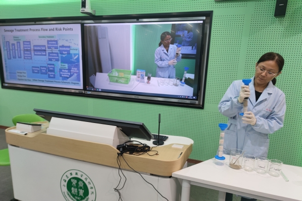 培训过程中,教学团队采用“理论讲解 + 可视化演示 + 互动实操”三维模式,确保技术传递的专业性与实用性:通过高清视频系统直观呈现污水处理核心技术与全工艺流程,帮助学员建立系统认知;以现场演示形式解析活性污泥性能检测、微生物镜检等关键操作,同步讲解生化处理单元的日常运行管理要点;借助虚拟仿真技术模拟污水处理厂常见风险场景,清晰标注安全隐患排查重点;更通过“情景再现”方式演示实验室试剂泄漏、化学试剂沾染皮肤、初期火灾等突发事件的标准化应急处置流程,强化学员安全操作意识。此外,团队还围绕学员提出的“活性污泥异常状态判定”“活性污泥培养驯化技术难点”等实际问题展开深度互动,逐一答疑解惑,切实解决当地教学与实践中的痛点。