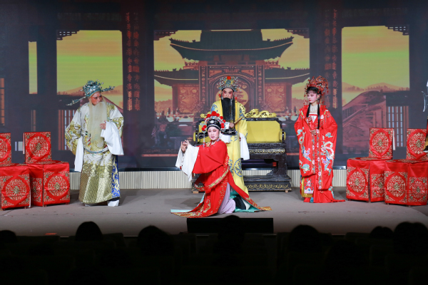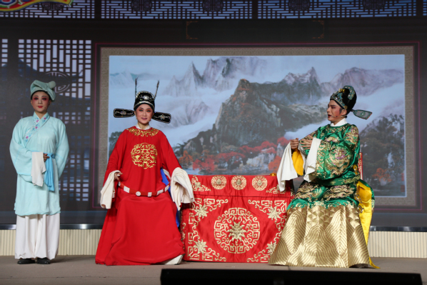 随着伴奏乐器奏响清脆的黄梅调演出正式开始,身着精致戏服的演员们以灵动的身段、婉转的唱腔登场,瞬间将现场观众带入《女驸马》的经典故事之中。展演选取了《女驸马》中“花园定情”“冒名赴考”“金殿封官”等核心片段,既保留了黄梅戏通俗易懂、唱腔优美的艺术特色,又通过演员细腻的肢体语言、生动的表情刻画,将冯素珍为救李兆廷冒名应试、喜中状元却因皇家赐婚陷入两难的情节演绎得淋漓尽致。