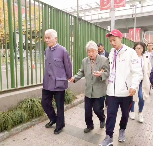 王同汉(右一)志愿服务第二届中国国际进口博览会