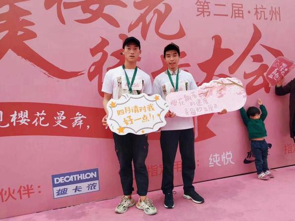 王同汉(右一)参加杭州徒步大赛