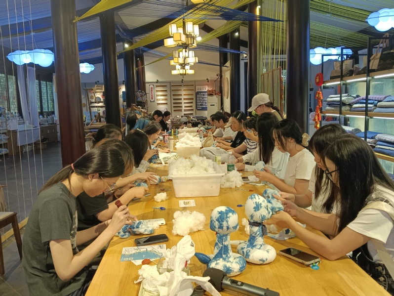 参加活动的同学表示“平时学习压力挺大的,今天专注于扎染创作,感觉整个人都沉静下来了。”“当看到自己亲手制作的独一无二的蓝染小蛇偶时,特别有成就感,所有的烦恼好像都被这抹靛蓝带走了。”师生们都认为将扎染这类非遗技艺与心理健康服务相结合,不仅提供了科学的情绪疏导渠道,更让他们在实践中感受传统文化的魅力,实现了文化传承与心灵成长的双向赋能。