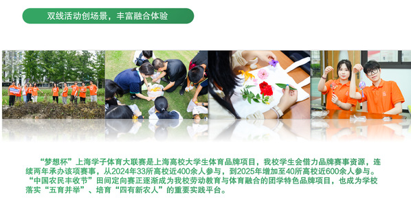 校外实践线依托“梦想杯”上海学子体育大联赛资源,以“中国农民丰收节”为切入点,面向全市高校创新举办田间定向赛。该项赛事已经逐渐成为我院劳动教育与体育融合的团学特色品牌项目,同时也是落实“五育并举”、培育“四有新农人”的重要实践平台。