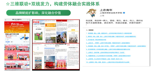项目先后被青年报、上海学联、新民晚报等20多家新闻媒体报道。学生劳动素养落地、体育精神得到内化,实现“劳育为基、体育为翼、五育协同”的育人效果。项目在开展的两年半的时间里,通过公众号、图片直播等平台宣传,累计浏览超20万人次,活动覆盖校内外学生近10000余人次,校学生会已将项目纳入“学期常规实践活动清单”,形成长效服务机制。