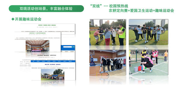 校园预热线将劳体融合融入日常,打造农耕定向赛+爱国卫生运动+趣味运动会三类可复制、易参与的活动。