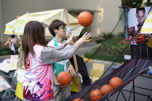 “解忧珠玑铺”引导大家通过挑选珠子颜色来识别情绪并制作手串。“心晴投篮站”借简易篮球机的趣味投篮为心灵充能。