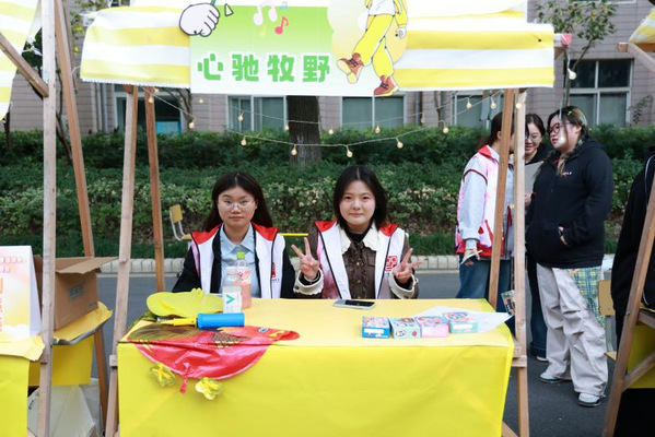创意系·心晴乐园。“哎,你看我这铁环还能转这么久!”创意系“一环百应”摊位前,李同学正专注地操控着铁环在地面滚动。有趣的游戏玩法让不少师生驻足尝试,滚铁环时的专注与成功后的欢呼,让现场充满了童真的气息,大家在这个过程中暂时卸下压力,感受着解压游戏带来的轻松与快乐。