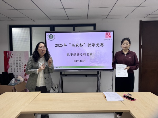 近日,创意系举办2025年 “尚农杯”教学比赛暨系部选拔活动,蔡新元、陈丽诗两位教师同台展示教学风采,系部全体教师到场观摩学习。