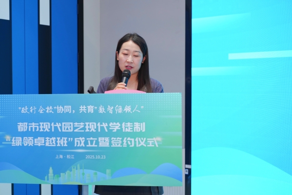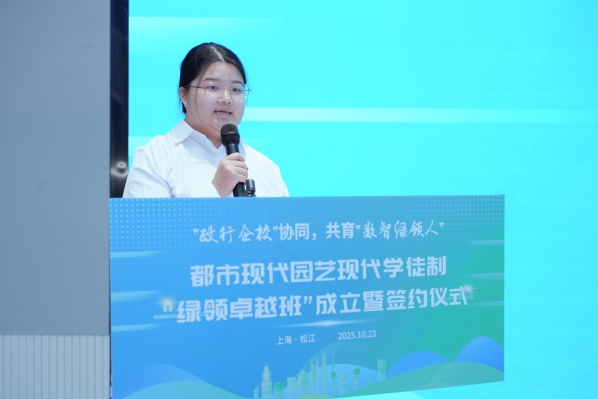 陈立婧在致辞中指出,作为教育部首批现代学徒制试点单位,学院积极响应国家职教改革部署,去年底牵头成立了全国都市现代园艺产教融合共同体和产业学院。她强调,学院积极落实《上海市高等职业教育全面适配产业发展工作方案》精神,旨在创新现代学徒制高技能人才培养模式,与共同体内多家行业领军企业携手,共同探索打造新型现代学徒制“绿领卓越班”。希望同学们锤炼一流技能,涵养一流素养,厚植一流情怀,做“精技艺、懂管理”的数智绿领人。