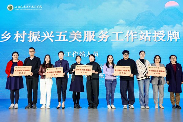 会上还举行了乡村振兴五美服务工作站授牌仪式,上海农林职业技术学院乡村振兴办公室主任周燕华为各工作站代表授牌。上海农林职业技术学院“乡村振兴五美服务”以创意系五大专业为基石,深度融合传统文化创意策划、乡村数字内容生产、农业数字品牌设计、和美乡村规划设计及农业数字化转型,构建了“策划-生产-设计-规划-运营”全链条服务体系。通过产教融合模式,师生团队深入乡村一线,在真实项目中将专业知识转化为振兴成果,不仅有效助力了乡村产业升级与文化焕新,更在服务实践中显著提升了师生的专业技能与综合素养,实现了育人效能与社会效益的双向赋能。未来,各方持将依托五美服务工作站,持续深化乡村振兴服务与实践。