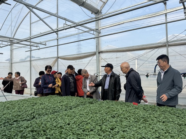 在铁皮石斛产业园,退休教职工们实地观看了铁皮石斛等中草药的现代化种植流程,深入了解从育种到成品的全产业链发展模式。随后在蔬菜种苗公司,大家观摩了小番茄、茄子等果蔬的新品种培育技术,对智能农业装备的应用成效表示赞赏。