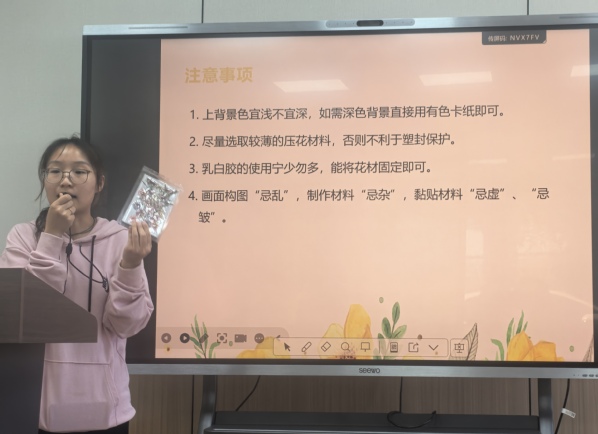 课程实践环节同样内容丰富、形式多样。在“传统劳动教育”主题中,教师们亲手参与咸鸭蛋制作,体验传统腌制技艺所承载的劳动智慧与文化内涵;在“现代劳动教育”主题中,大家动手制作压花书签,将自然之美融入劳动实践,切身感受“手脑并用、寓教于乐”的教学理念。