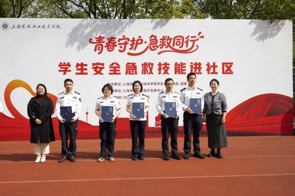 院团委书记张楠、学工部副部长张莎莎向松江急救中心的专业师资团队颁发了“一站式”学生社区特聘安全技能培训导师聘书,专业力量的加入为后续学生急救技能的提升筑牢了坚实根基。