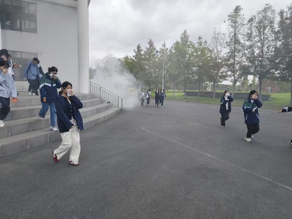 本次消防疏散逃生演练预设背景是,五厍实训基地教学实训楼在学生上实训课期间因电气线路短路引发火灾。模拟火灾报警响起后,全体师生在上课老师、实训基地教职工的引导下,迅速撤离火灾现场。整个演练过程紧张有序,现场疏散分工明确、组织有力、行动迅速,达到了演练预期效果。