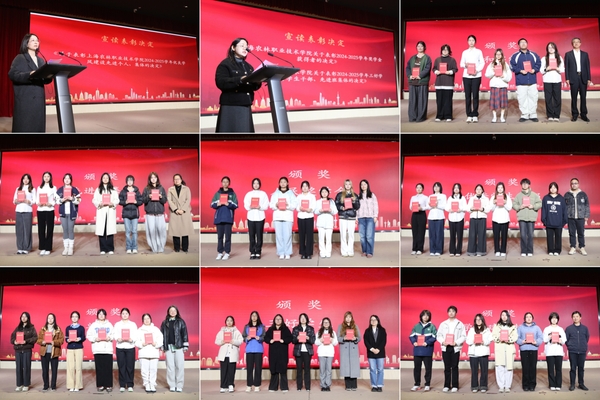 会上,学工部副部长、团委书记张楠、学工部副部长张莎莎分别宣读《上海农林职业技术学院关于表彰2024—2025学年奖学金获得者的决定》《上海农林职业技术学院关于表彰2024—2025学年三好学生、优秀学生干部、先进班集体的决定》和《关于表彰上海农林职业技术学院2024—2025学年优良学风建设先进个人、集体的决定》。上海惠和种业有限公司董事长郏惠彪、学工部部长高东菊和各系学工负责人分别为荣获惠和奖学金、人民奖学金、三好学生、优秀学生干部、单项奖、先进班集体、学风建设标兵等荣誉称号的学生代表颁奖。