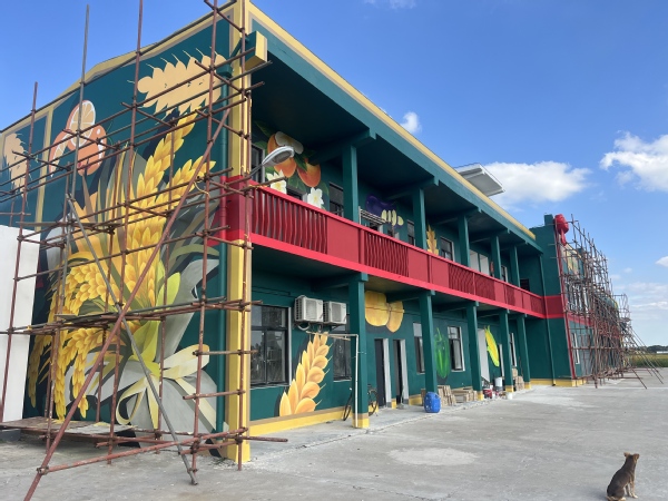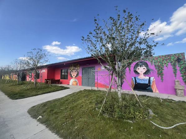 此外,在其他建筑的墙绘设计中,将礼盒元素进行了延续。赋予农业文创“没有蕉虑、心想事橙、柿柿如意、萍萍安安”等墙绘艺术表现形式。这些创意墙绘,超越了简单的图案绘制,成为一种“可看、可读、可祝福”的立体艺术。它们让普通的农产品化身为传递温情与正能量的文化符号,极大地提升了整个墙绘的互动性与情感价值,使游客在打卡拍照的同时,也能会心一笑,带走一份独特的、来自小独圩岛的吉祥祝福。