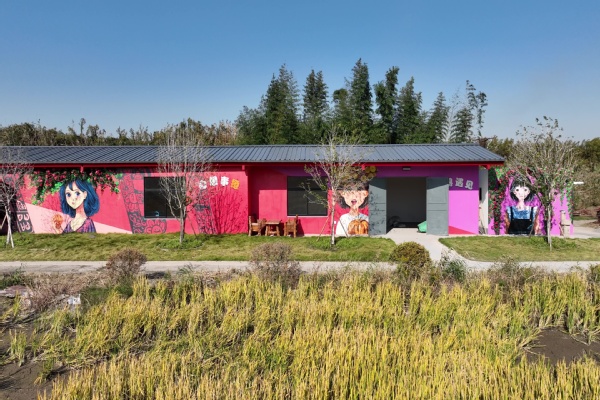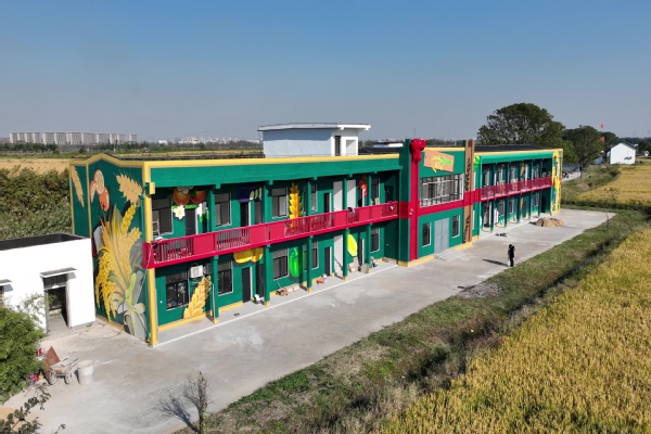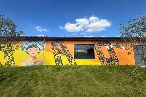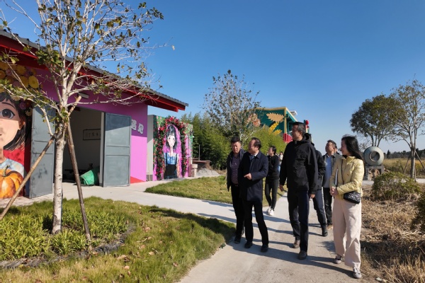 会后,学院一行实地考察了石湖荡镇泖岛生态农业与文旅融合发展情况,重点调研了小独圩岛墙绘成果。该墙绘项目由创意系风景园林设计专业负责人张婷老师带队,联合视觉传达等专业师生共同完成,以《天赐的礼物》为主题,融合“浦江之首”地标、水稻文化等本土元素,通过“农业礼盒”“中国红蝴蝶结”等创意设计,将农产品转化为“没有蕉虑”“心想事橙”等谐音祝福语,形成可观看、可互动、可传播的乡村艺术景观,极大提升了小独圩岛的文化氛围与视觉魅力,获得石湖荡镇领导的高度认可。