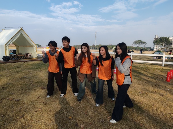 中午,团队抵达占地四百余亩的大千天鹅湖庄园。这座被漕港河环绕的湿地型岛屿,以近2000只黑天鹅构成核心生态景观,为团建活动提供了兼具自然意趣与教育意义的场景。在鸟类知识走廊,大家结合专业视角,通过图文展板与标本深入探讨生态保护与农业可持续发展的关联,将生态认知与专业思考有机结合。随后,露营草坪上的“协作闯关”“趣味竞赛”等团建活动成为提升团队凝聚力的核心环节,从“盲人摸象”的信任搭建到“极速60秒”的策略共创,骨干们主动分担任务、即时沟通方案,在攻克难题的过程中打破壁垒、凝聚共识。尤其是在团队接力项目中,大家分工明确、配合默契,充分展现出团学骨干的责任担当与协作精神,欢声笑语间不仅拉近了彼此距离,更锤炼了高效协作的实战能力。下午5时,全体人员带着满满的收获顺利返程,为本次聚焦成长的拓展活动筑牢团队根基。