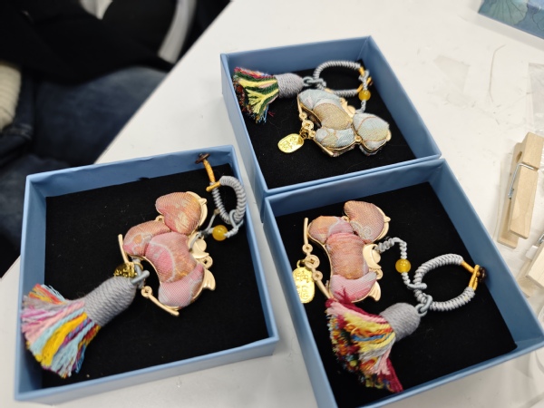 随后进入手工实践环节。在柳溪老师的指导下,同学们亲手制作“云锦小马挂件”。云锦作为中国非物质文化遗产,以其绚丽多彩、纹样精美而著称。柳溪老师细致讲解云锦的历史与工艺特点,并示范制作技巧。同学们在穿针引线中感受传统手工艺的魅力,在动手实践中体会匠心精神,一个个精致灵动的云锦小马陆续完成,成为承载文化记忆的独特作品。