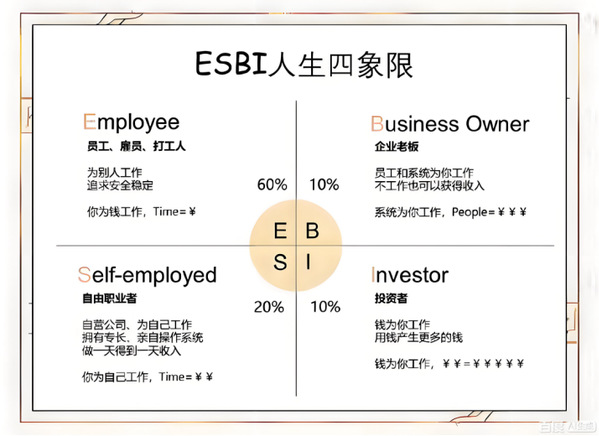 张淳轶认为本书是“帮助我们重新审视自身与金钱关系的思维启蒙之作”。他首先以书中“两个爸爸”——一生为钱工作的亲生父亲与让钱为自己工作的朋友父亲——的对比为核心脉络,阐释了“富人思维”与“穷人思维”在看待工作、财富及风险上的根本差异。为了让抽象概念更易理解,张淳轶分享了自己从餐厅服务员到自主摆摊的真实经历,通过亲身实践生动解析了资产与负债的本质区别,并借助ESBI四象限模型,引导大家思考如何从为钱工作的左侧象限,迈向让钱工作的右侧象限。