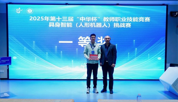 比赛现场,参赛教师全神贯注、沉着应战,精准完成机器人调试、编程优化、场景应用适配等各项竞赛任务。他们凭借扎实的专业功底、娴熟的实操技能和创新的解题思路,充分展现了新时代智能机器人领域职业教育教师的精湛技艺、教学素养与奋进姿态。经过多轮激烈角逐,赛事最终评选出一等奖1名、二等奖3名、三等奖5名及优胜奖3名。其中,上海农林职业技术学院人工智能专业教师贾国鹏凭斩获一等奖,展现了学院在智能装备领域的教学实力与师资培养成效。