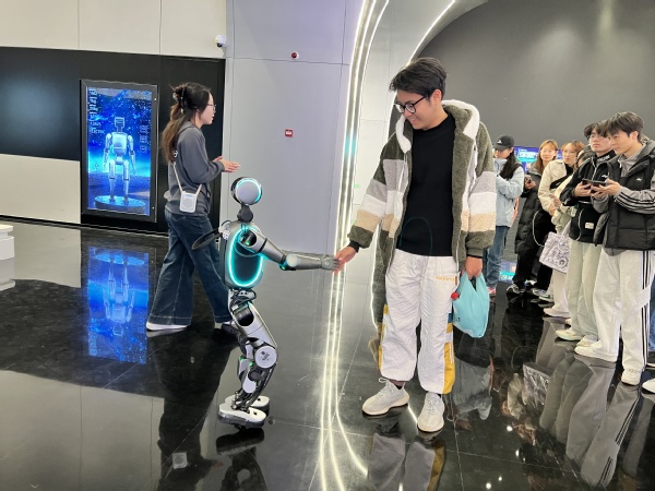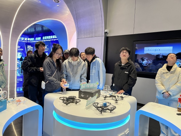 活动伊始,同学们走进“人工智能与机器人展厅”,瞬间被前沿科技的魅力所吸引。在人形机器人H7的交互演示区,大家驻足观摩其精准灵活的动作指令响应;在飞行机器人展示区,详细了解不同形态机型的传感器技术应用原理;在中国空间站核心舱模拟环境中,沉浸式感受航天科技与智能控制的完美融合。机器人整齐划一的舞蹈表演、互动环节中与智能设备的实时联动,让同学们对智能感知、空间交互等前沿领域从理论认知迈向直观体验,深化了对科技发展的理解。