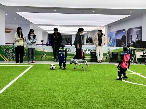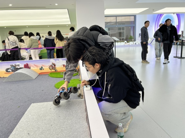 参观行程中,“智造工厂探秘”环节让实践体验更具深度。师生一行实地走访全球教育机器人销量领先的智能制造生产基地,近距离观察自动化生产线的运作流程。在“AI机器人科技互动区”,机器人足球赛的激烈对抗、越野竞速的速度激情、脑控赛车的意念操控以及VR大空间行走的沉浸体验,让同学们切身感受人工智能在体育竞技、神经科学、虚拟现实等领域的创新应用,直观体会技术融合带来的产业变革活力。