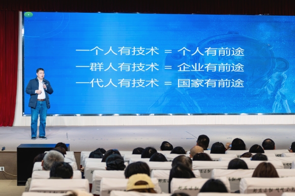 王曙群结合三十余载航天一线工作经历,讲述了从普通工人成长为技术专家的奋斗历程。他以参与空间交会对接、嫦娥工程等重大航天工程总装任务的亲身经历为主线,诠释了航天精神谱系的深刻内涵。面对国外技术封锁,他带领团队攻坚克难,成功突破航天超细直径小腔检漏管路制造等核心技术难题,用实际行动践行了“自力更生、艰苦奋斗、大力协同、无私奉献、严谨务实、勇于攀登”的航天精神和“特别能吃苦、特别能战斗、特别能攻关、特别能奉献”的载人航天精神。作为首位获得何梁何利基金科学与技术创新奖的高技能人才,全国劳模、全国五一劳动奖章获得者,他分享荣誉背后坚守与拼搏的故事,朴实而真挚。“工人同样大有可为,关键是要做一行爱一行,更要耐得住寂寞,很多工作都是从拧好一颗螺丝钉开始的。”这一职业理念感染着现场师生,让大家深刻领悟到“脚踏实地”才有“仰望星空”的人生真谛。