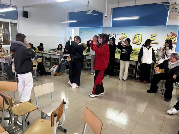 活动筹备阶段,各班同学便化身“策划官”:黑板上绘满“2026迎新年”的创意板报,课桌椅围起环形“小舞台”,零食与装饰将教室装点成温馨的“新年会场”。晚会开场后,才艺展演率先点燃氛围:笛声婉转的乐器独奏、深情款款的歌曲演唱,让教室回荡着青春韵律;在“你演我猜”等团队游戏中,同学们用夸张动作传递趣味词语,“小拳拳捶你胸口”的表演引得全场哄笑;互动挑战中,小组协作的默契让陌生同学渐渐熟络,欢笑声里,班级的距离被悄然拉近。