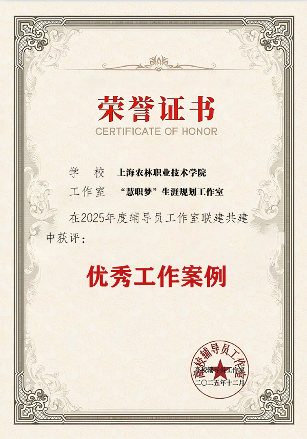 近日,由高校辅导员工作室联建共建联络组组织的2025年度联建共建优秀案例评选结果正式揭晓。“慧职梦”生涯规划工作室凭借其扎实的共建实践与显著的协同育人成效,成功获评“协同育人优秀案例”。