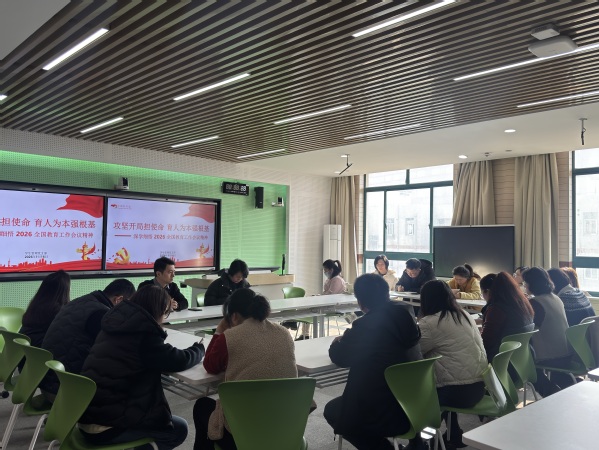 全体党员通过一段视频深入了解了全国教育工作会议提出的八项重大任务。高东菊围绕会议召开的时代背景与总体定位、核心部署等重点内容,对2026年全国教育工作会议精神进行了系统解读。她指出,2026年作为“十五五”规划谋篇开局的关键节点,也是教育强国建设从量的积累迈向质的跃升的攻坚之年。会议明确的“稳中求进”工作总基调与八大重点任务,为新学期学生管理工作提供了根本遵循和行动指南。重点解读了会议强调的立德树人根本任务、教育公平与质量提升、人工智能赋能教育改革、高水平教师队伍建设等关键部署,结合学生管理工作实际,深入阐释了教育的政治属性、人民属性、战略属性的深刻内涵,以及“四个放在”的战略要求对学生思想政治教育、日常管理服务等工作的指导意义。她强调,支部党员要深刻把握教育强国建设的六大特质和八大体系,将会议精神转化为推动学生成长成才的具体举措。