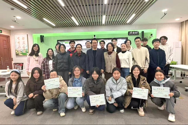 在表彰环节,九位同学荣获“优秀讲书人”称号,潘国俭为获奖同学颁发证书。一纸奖状,不仅是对他们认真准备、精彩讲述的认可,更是对他们乐于分享、传递智慧的那份热情的鼓励。证书映着他们喜悦的笑容,也闪耀着思考与交流的光芒。